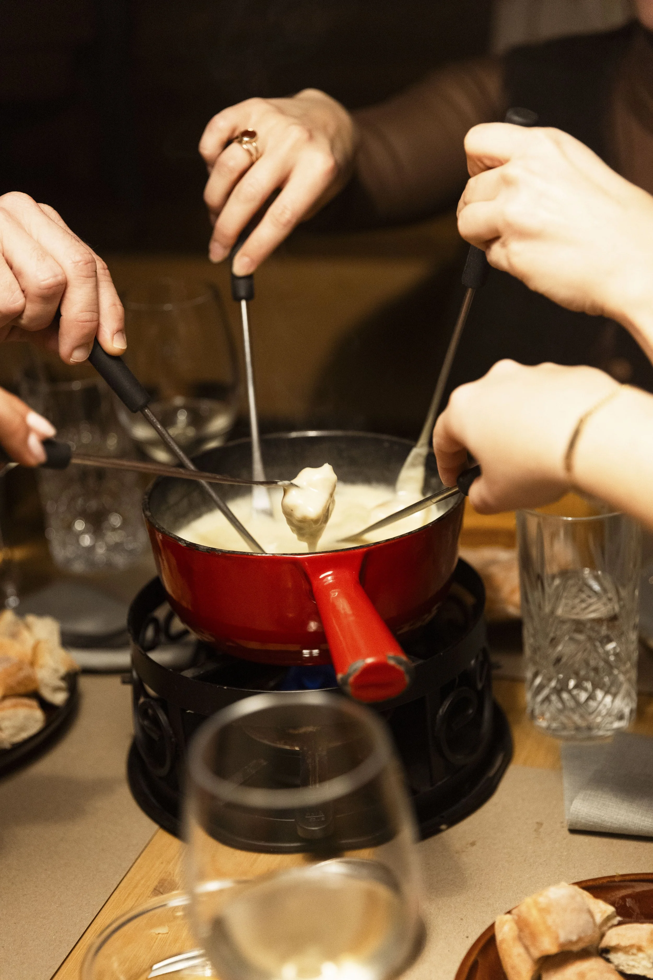 Wir bieten eine Auswahl an Fondue-Kreationen an. Bitte informiere dich bei uns im Voraus über spezielle Ernährungsbedürfnisse oder Allergien, damit wir uns bestmöglich darauf einstellen können. Anpassungen sind begrenzt möglich.